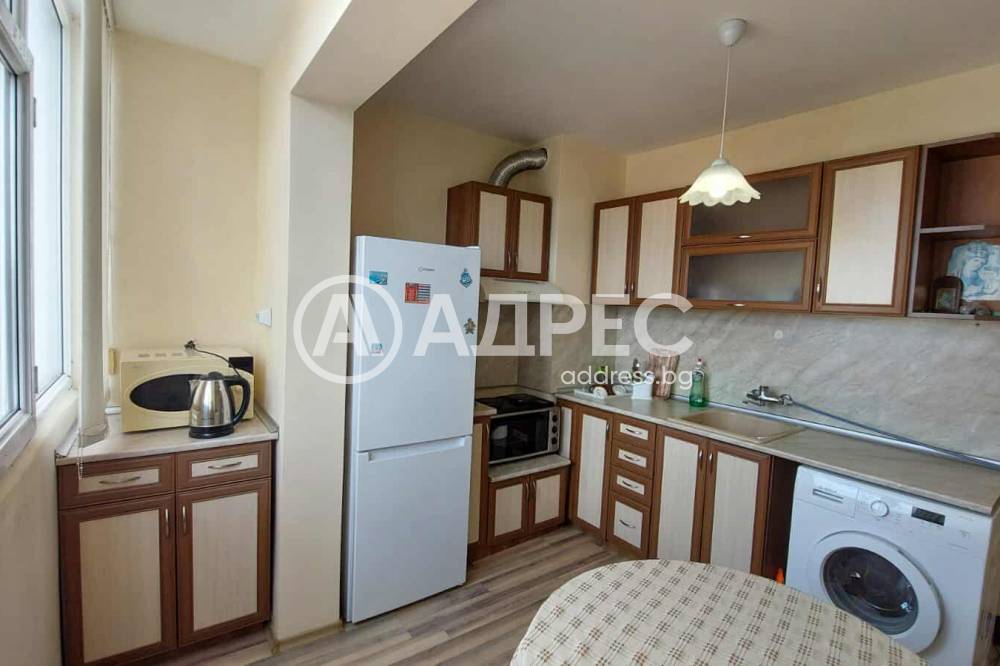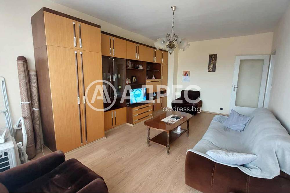 АДРЕС предлага за продажба, Двустаен, панелен апартамент с площ от 60 кв.м., на осми непоследен етаж. Жилището се състои от кухня с усвоена тераса, спалня, хол с тераса, коридор и баня със санитарен възел. Подови настилки - ламиниран паркет, стени - латекс. Дограмата е сменена с PVC. Баня в отлично състояние. Готов за живеене. Изложение: изток/запад. Прилежащо мазе с площ от 3 кв.м.