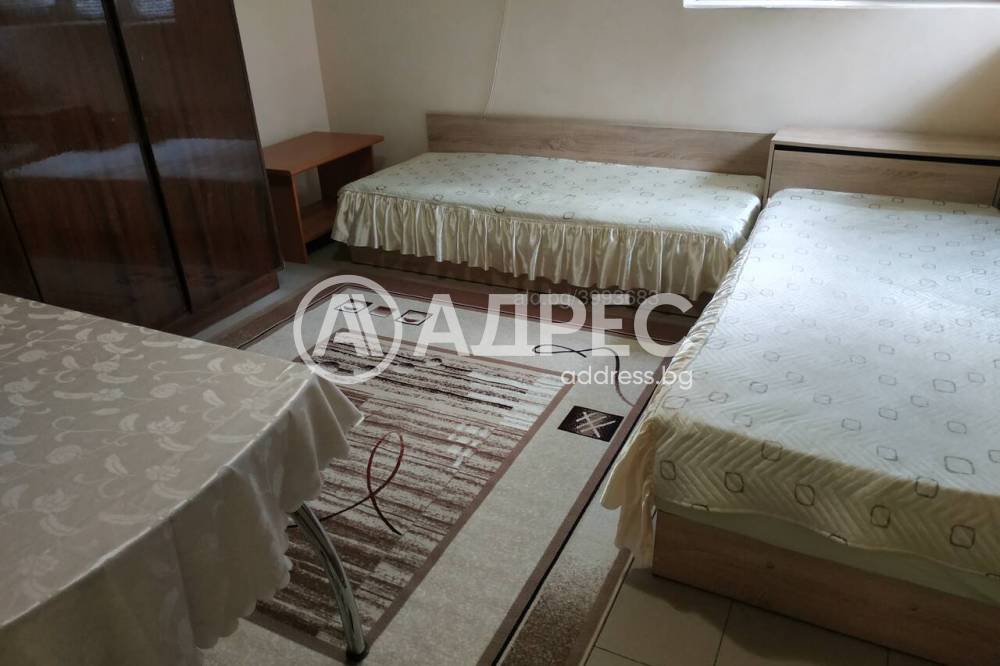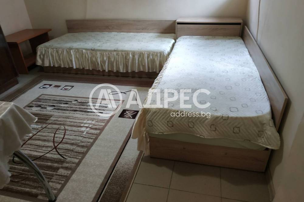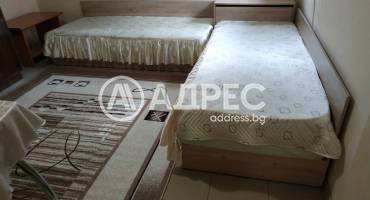 Приземен етаж от двуетажна кооперация с отделен вход, с площ от 40 кв. м. Имотът е след ремонт и се състои от две стаи с коридор и санитарен възел. Жилището се предлага обзаведено и оборудване - с климатик, пералня, хладилник, телевизор. Подовите настилки са на балатум и теракота, стени с латекс. Санитарен възел на фаянс и теракота. Подходящо зананасяне - веднага.
