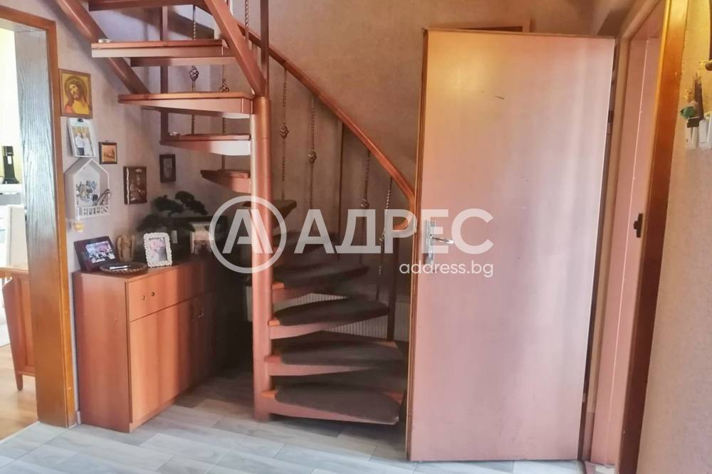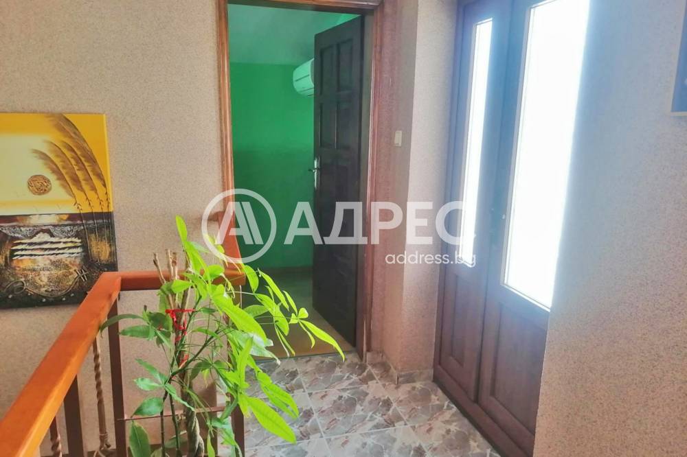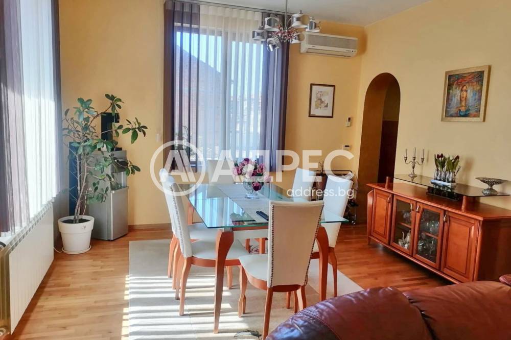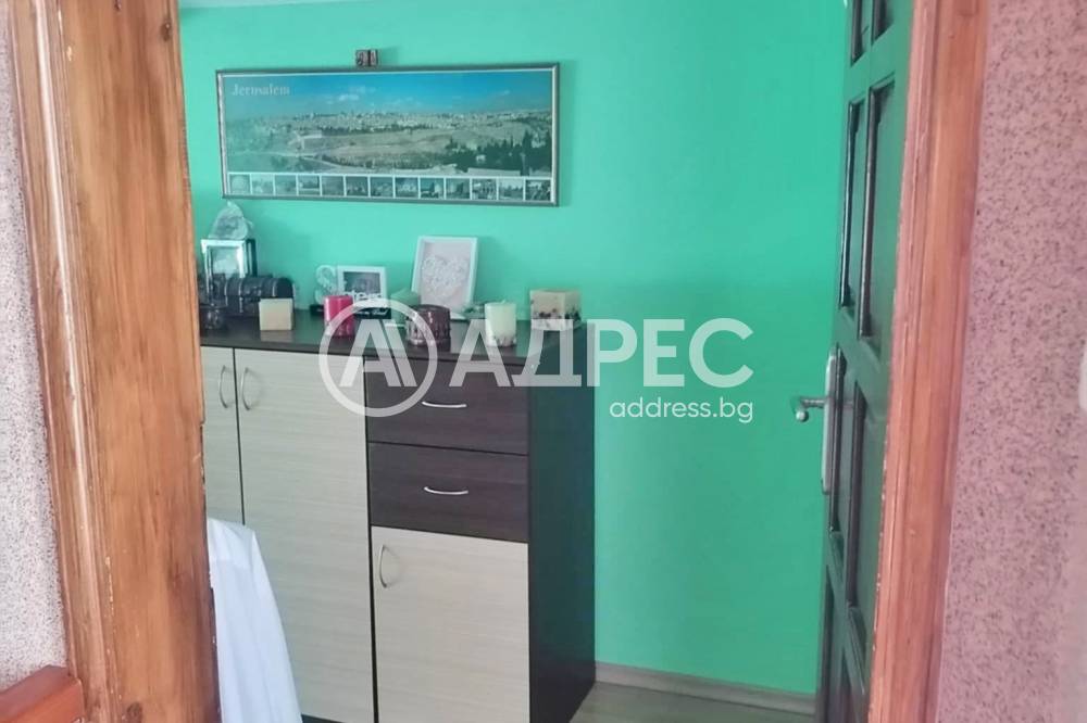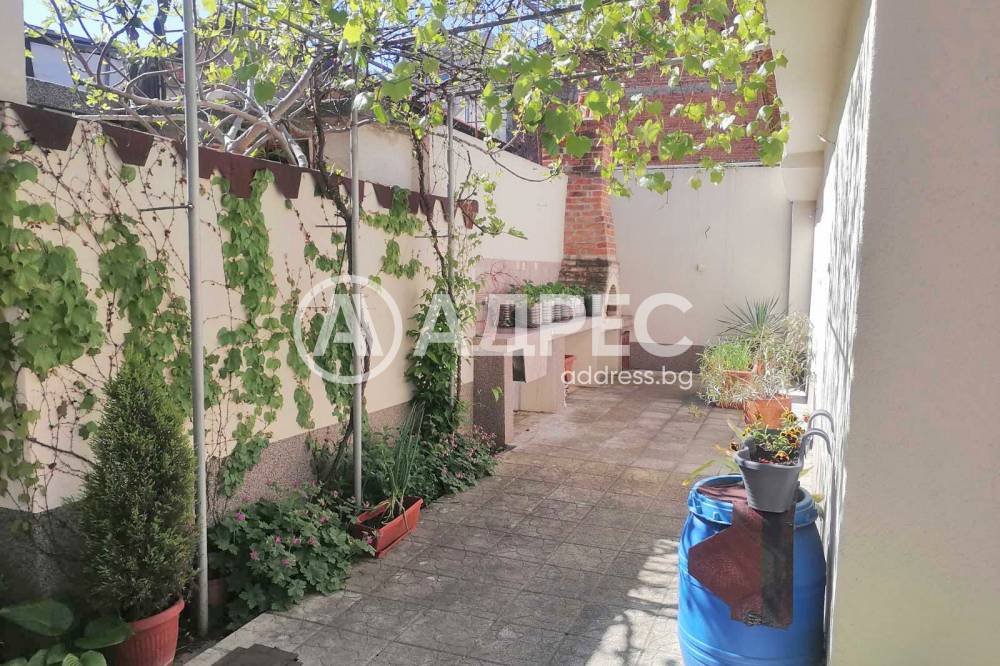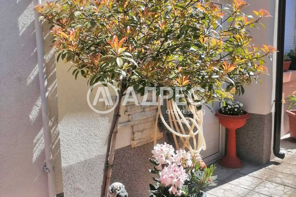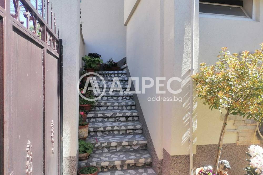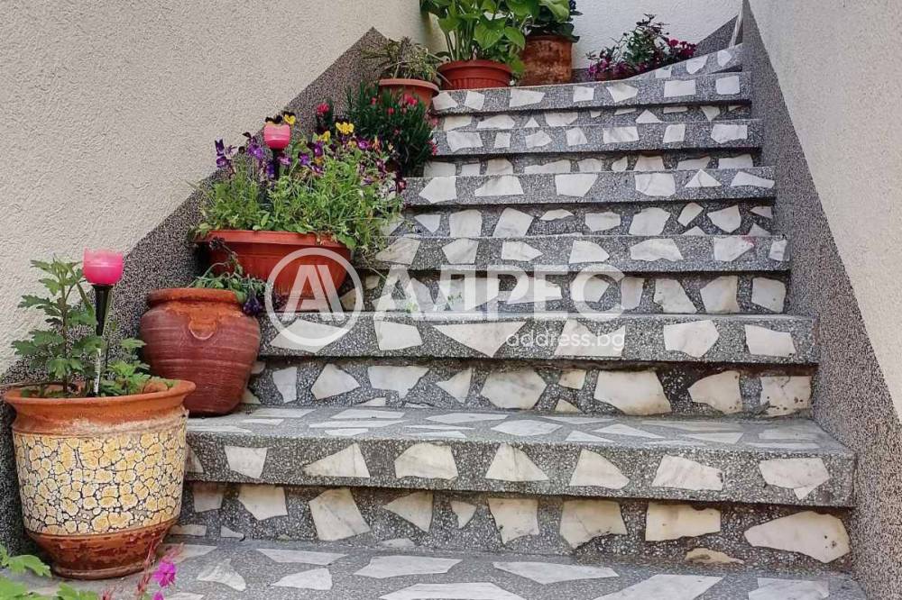 Предлагаме на Вашето внимание ВТОРИ И ТРЕТИ ЕТАЖ от масивна жилищна сграда, заедно с помещение на партер, два гаража и дворно място. Етажът се намира в района на старата пиаца и е с отделен вход и отделен двор от първи етаж. На партера се намира малко помещение за склад, което се използва за котелно. Първи етаж е с площ от 85 кв.м. и се състои от просторна дневна с кухн.бокс, спалня, коридор и санитарен възел. Подови настилки-ест.паркет и теракота, латекс по стените, PVC дограма. Посредством вътрешни стълби се осъществява достъпът до втори етаж с площ от 93 кв.м., където са разположени три спални, коридор и баня със санитарен възел. Подови настилки-ест.паркет и теракота, латекс по стените, PVC дограма.Панорамна тераса на етажа. Имотът е в отлично състояние, продава се с обзавеждане и оборудване. Дворното място е отлично поддържано, отопление на газ.
