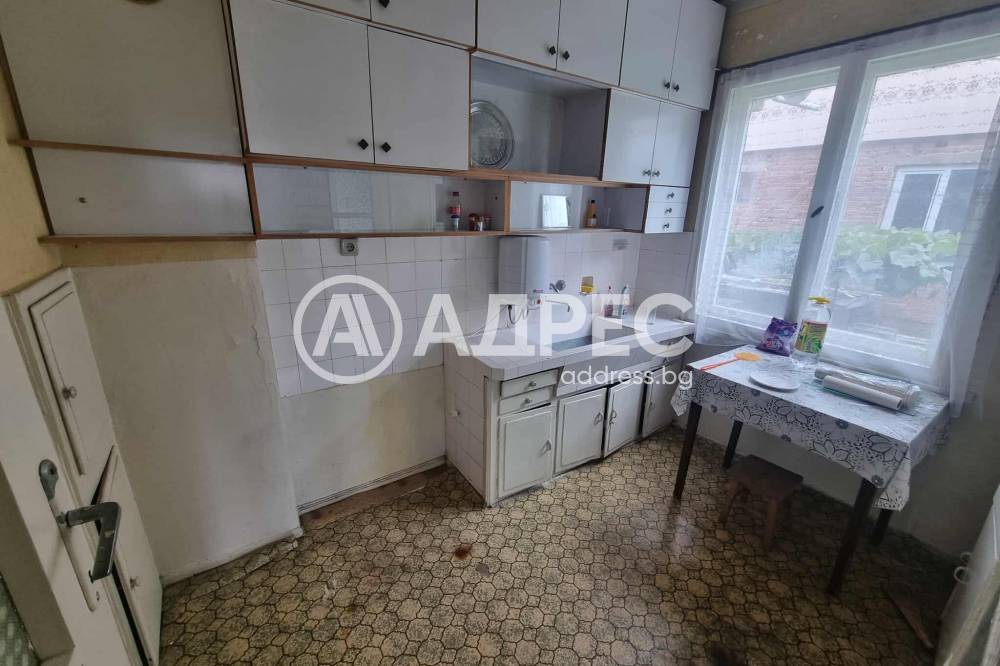 Просторен, ПЪРВИ ЕТАЖ от двуетажна къща, с площ от 105 кв.м. Жилището се състои от антре, хол с преход към спалня, кухня с кухненски бокс и всекиднедна с излаз на Г-образна тераса, баня и тоалетна. Прилежащ приземен етаж 56 кв.м. Дворно място - в идеални части - с площ от 140 кв.м., в него има два гаража. Между етажите е плоча. Възможно е преустройство и обособяване на три спални.