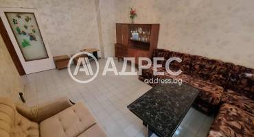 ДВУСТАЕН панелен АПАРТАМЕНТ, с площ от 60 кв.м., на шести етаж. Жилището се състои от хол, спалня, кухня обособена като втора спалня, коридор и баня със санитарен възел. В коридора има изнесен кухненски кът, с лява мивка и шкафове. Две тераси - остъклени. Подови настилки с балатум и теракота, стени на тапети. Банята със санитарния възел е на фаянс и теракота, с лята мивка. Дървена дограма. Апартаментът е с източно и западно изложение. Метална входна врата. Имотът се продава с наличното обзавеждане, ел. уреди - по договаряне.
