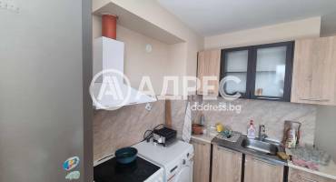 Двустаен апартамент, с площ от 60 кв.м., разположен на трети етаж, в отлично състояние. Състои се от хол с излаз на тераса, спалня, кухня с усвоена тераса, коридор и санитарен възел. Подовите настилки са ламиниран паркет и теракота, стените са с тапети, дограмата е подменена с PVC. Външните стени на жилището са с вътрешна изолация. Вътрешни интериорни врати. Продава се с частично обзавеждане. Изложение: изток/запад. Прилежащо мазе.
