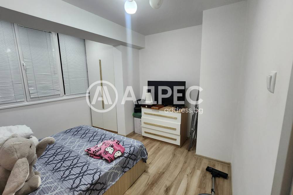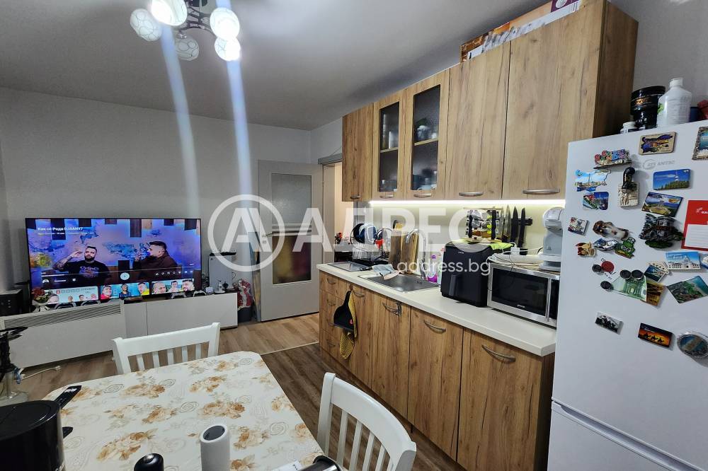 Адрес продава гарсониера след основен ремонт с площ 41 м². Състои се от дневна с кухня и остъклена тераса, коридор, спалня и санитарен възел. Изцяло подменени ел. и ВиК инсталации. Нова входна врата, PVC дограма, подови настилки - ламиниран паркет, стени - латекс, баня на фаянс и теракота. Западно изложение. Продава се напълно обзаведен и оборудван (уреди в гаранция). Прилежащо избено помещение. Имотът е подходящ както за живеене, така и за инвестиция - отдаване под наем.