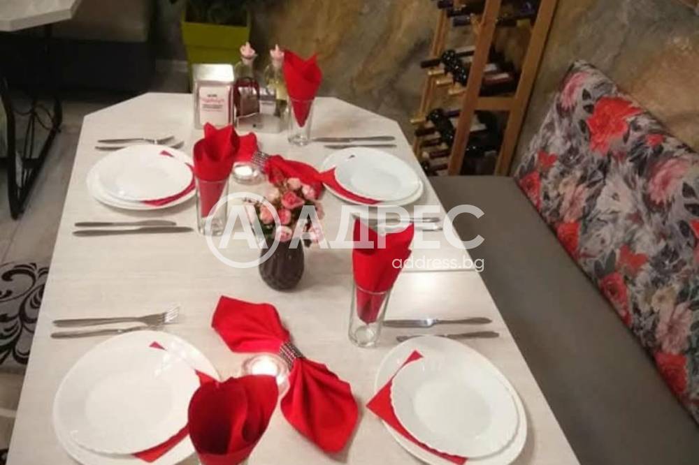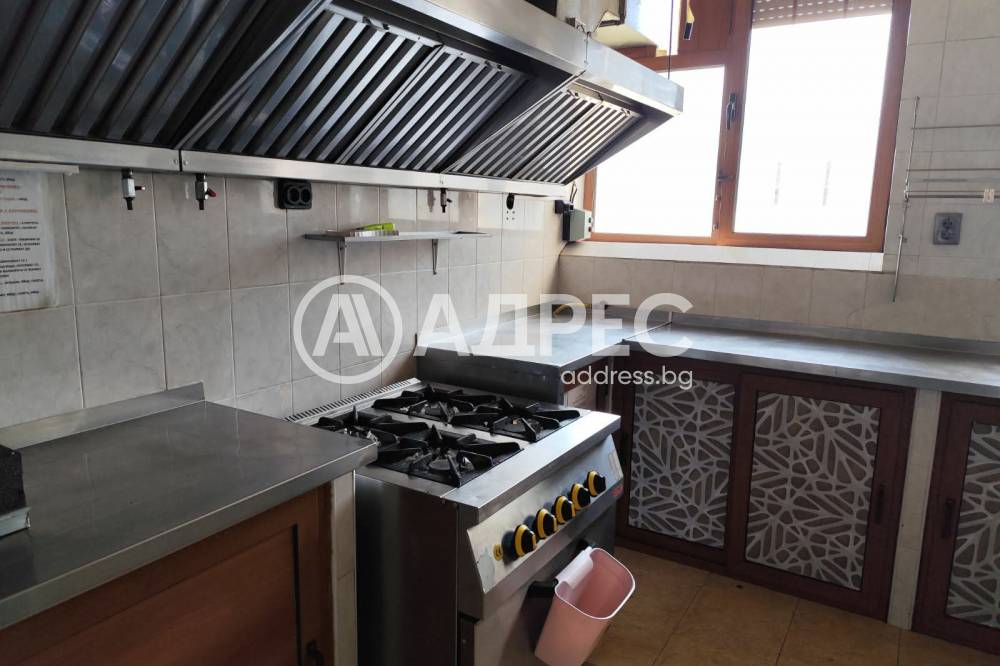 "АДРЕС" предлага ЗАВЕДЕНИЕ (ресторант) под наем със застроена площ от 120 кв.м., състоящо се от: голяма зала - 60кв.м., малка зала с бар плот 30 кв.м., кухня 13 кв.м., две тоалетни - 10кв.м. и миялно помещение с площ от 6 кв.м.