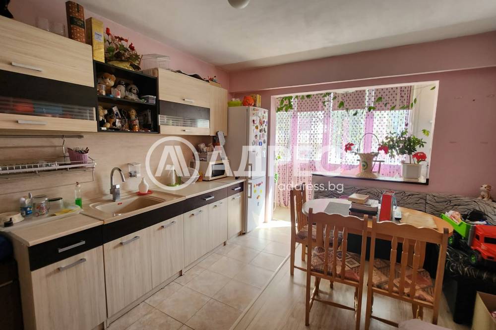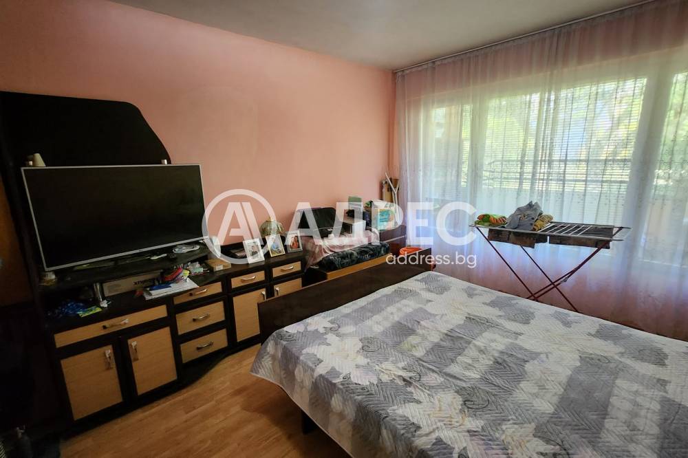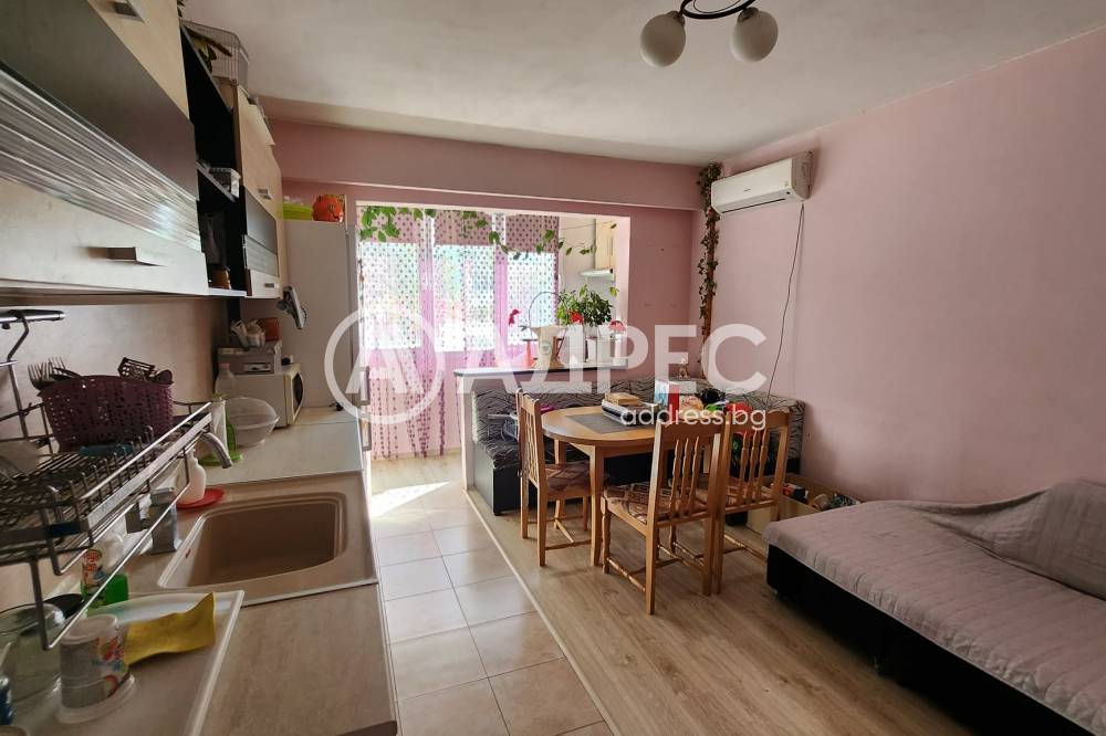 АДРЕС предлага за продажба: Двустаен, саниран апартамент, с площ 64 кв.м., на първи жилищен етаж. Жилището се състои от хол, спалня с тераса, кухня, коридор и санитарен възел. Ново кухненско обзавеждане е поставено в хола, като старата кухня има възможност да стане втора спалня. Дограмата е подменена с ПВЦ, стени - латекс, под - ламиниран паркет и теракота. Баня - фаянс и теракота.
