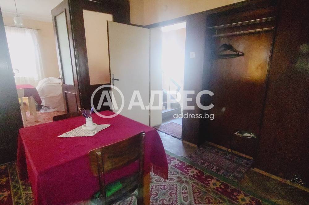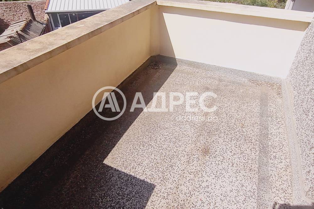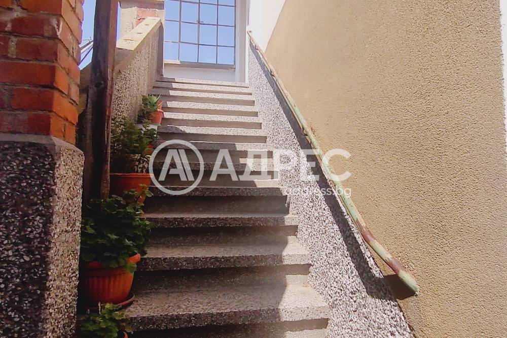Адрес, предлага за продажба, ТРЕТИ ЕТАЖ от триетажна къща с площ от 95 кв.м. Етажът се състои от три стаи, просторно антре, две големи тераси и санитарен възел. Къщата е разположена в дворно място 235/497кв.м. в идеални части. Имотът е със самостоятелен вход и двор, в който има малка къща 53 кв.м, състояща се от три стаи и антре. Партерният етаж има лице към улицата, където е разположено търговско помещение с площ от 36 кв.м., както и малък гараж, изграден от сглобяема конструкция. Продава се с наличното обзавеждане. Има нужда от освежителни ремонтни дейности.