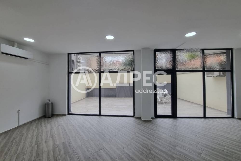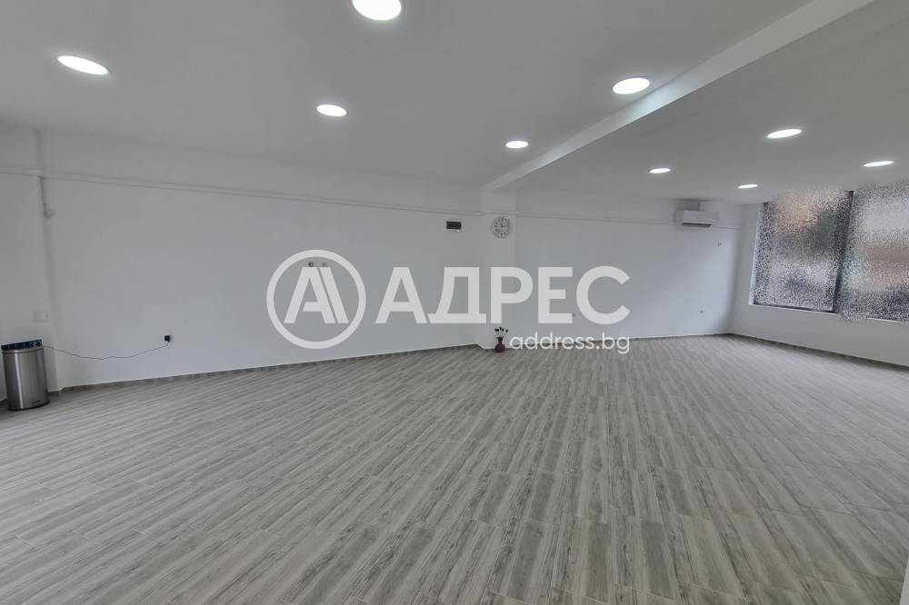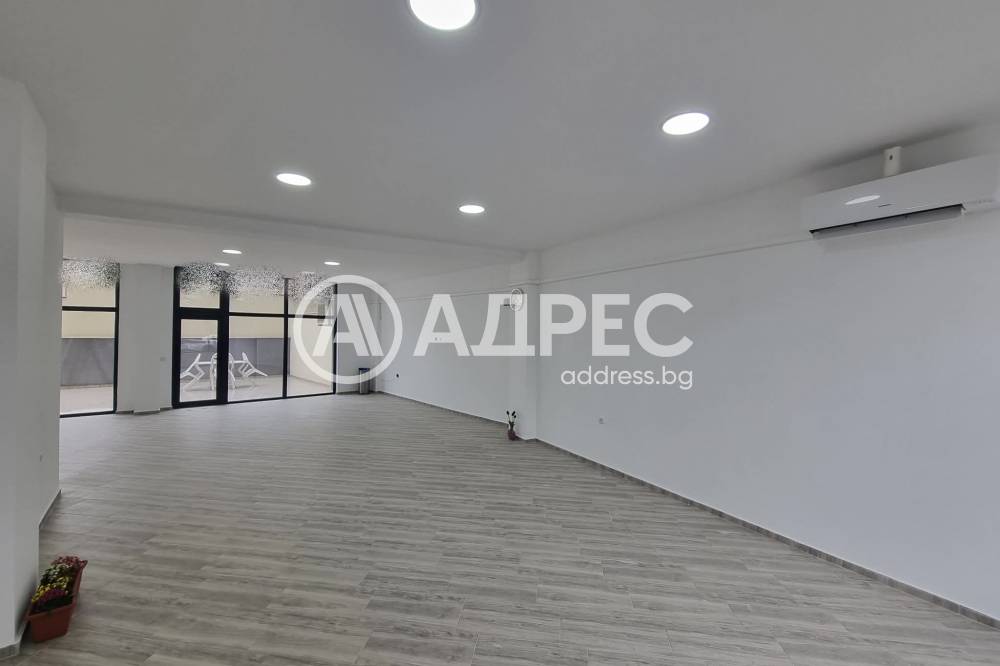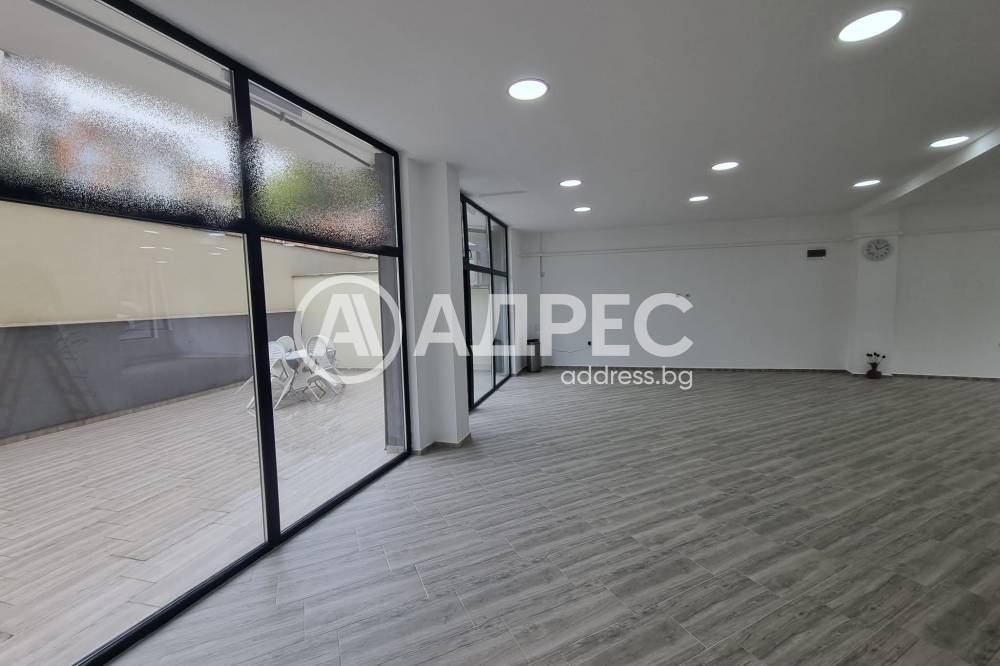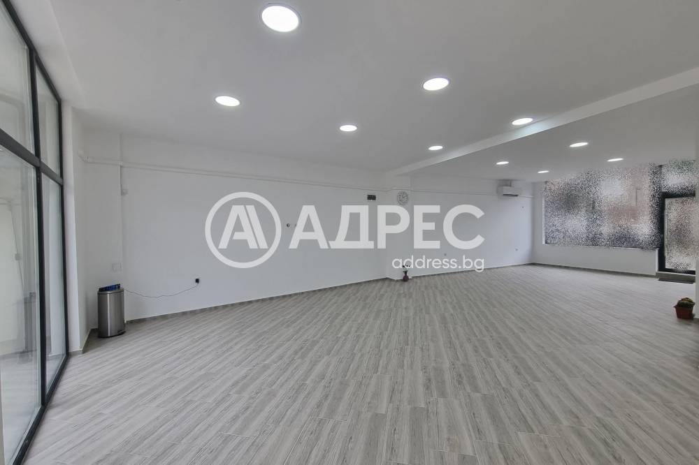 "АДРЕС" предлага търговски обект - магазин, под наем с площ от 107 кв.м., състоящ се от просторна търговска зала, санитарен възел и вътрешен (самостоятелен двор) с площ от 45 кв.м. Имотът е разположен на партерно ниво в нова сграда с АКТ 16. Разполага с голямо лице и витрина на локация с интензивен човекопоток. Състоянието е НОВО, неизползван до момента. Отоплява се посредством климатици.