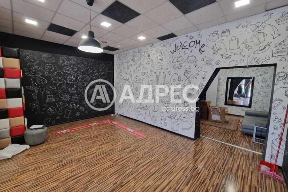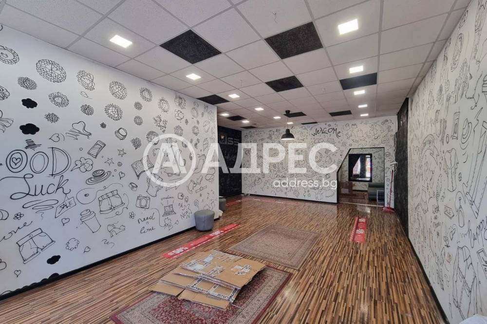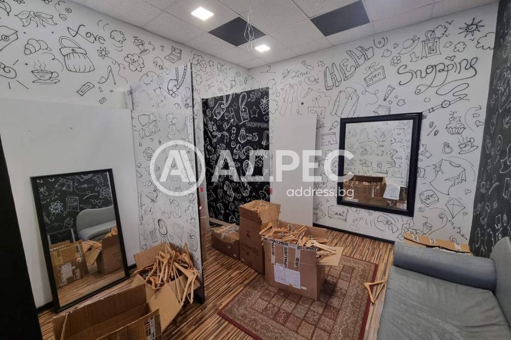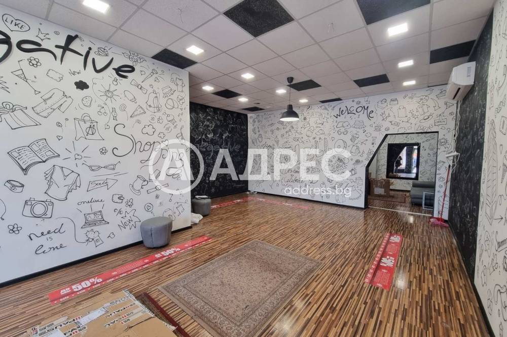 "АДРЕС" предлага ексклузивно МАГАЗИН под наем, с площ от 70 кв.м. Отлично местоположение на пешеходна зона с интензивен и постоянен човекопоток. Състои се от просторна зала и съблекалня, разполага с голяма витрина. Добро състояние на имота, подовата настилка е ламиниран паркет, стените са ръчно изрисувани, а осветлвнието иновативно и ефектно. Отоплява се посредством климатик.