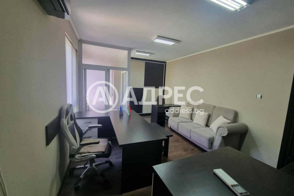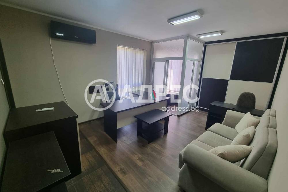 Помещение, отдаващо се като офис, с площ от 25 кв.м., разположено на втори етаж в сграда ново строителство. Състои се от голяма стая, отделно място за пушачи и санитарен възел. Подови настилки с теракота, стени с латекс. Санитарният възел е на фаянс и теракота. Дограма - ПВЦ. Отдава се с обзавеждане, което се вижда по снимките.Има климатик!!!