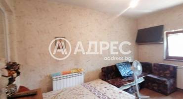 Самостоятелна къща, сравнително ново строителство, на тихо място в отлично състояние.Първи етаж се състои от дневна, спалня, санитарен възел. С вътрешно стълбище се стига до втори етаж, състоящ се от три спални. Подови настилки - теракота и мокет, стени с латекс и дървена ламперия. Инсталирани климатици. Добре уреден двор от 500 кв.м., паркомясто. СГРАДА: Самостоятелна, тухлена сграда, строена през 90те год. ПРЕДИМСТВА: Тих квартал; много добро състояние.