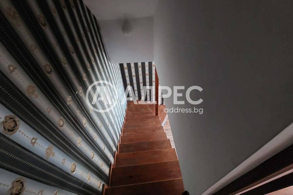 Двуетажна тухлена къща със ЗП от 50 кв.м. и РЗП от 100 кв.м., разположена в дворно място в идеални части. Къщата е след ремонт. На първи етаж има хол, кухня с трапезария, коридор, баня и тоалетна. С вътрешни стълби се стига до втори етаж, където има хол, спалня, баня и тоалетна, голяма тераса закрита с дървена ламперия. С отделен вход се стига до сутеренен етаж, състоящ се от спална, кухня, баня и тоалетна и килер. Санитарните помещения са след ремонт. Едната баня е с душ-кабина. Имотът се продава частично обзаведен.