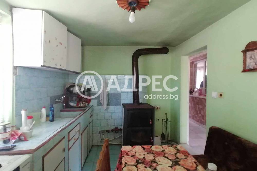 АДРЕС предлага за продажба: Едноетажна КЪЩА с дворно място и ГАРАЖ. Къщата е с ЗП 62 кв.м. разположена в двор с площ 270 кв.м., с отстъпено право на строеж. Състои се от основен етаж и избен етаж. Основният етаж се състои от три стаи, коридор и баня с общ санитарен възел. Дограмата на имота е подменена с нова PVC дограма, подовите настилки са ламинат и теракота, стените са с тапети. Изградено е локално парно с камина. Избения етаж с състои от три стаи и коридор. Разполага с гараж с площ от 24 кв.м. и външен санитарен възел. Продава се частично обзаведена.