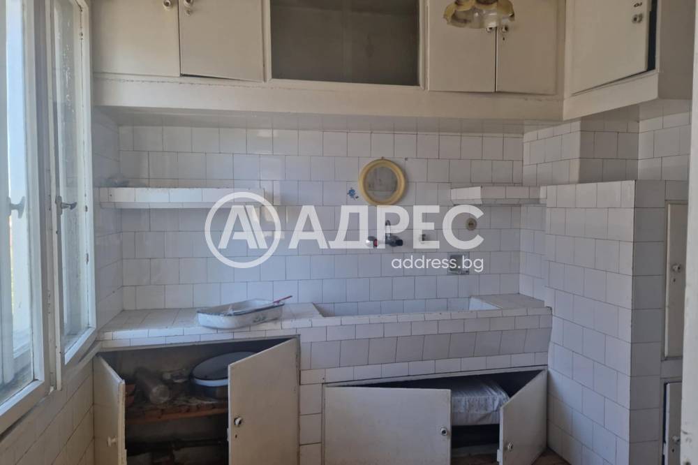 АДРЕС продава: Трети етаж от масивна къща с площ от 98 кв.м., заедно със стая за живеене на партерен етаж със санитарен възел подходяща за обитаване с площ от 21,5 кв.м., килер, 1/3 ид.част от двор целия с площ от 453 кв.м. Етажа се състои от хол, две спални, от които едната е с преход, трапезария с кухня, санитарен възел, две тераси. Етажа е подходящ за живеене след ремонт, като има възможност да се направи преустройство и да стане едно удобно съвременно жилище. Стаята на приземния етаж е просторна със санитарен възел. Двора е разпределен между всички съсобственици, като всеки има определено място за ползване. В него има масимна постройка, състояща се от една голяма стая, външен санитарен възел и след ремонт може да се пригоди за стая за почивка, барбекю. Голям ламаринен гараж.