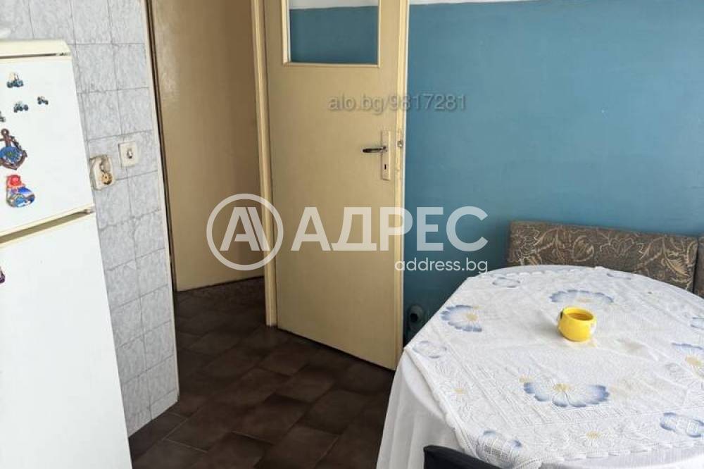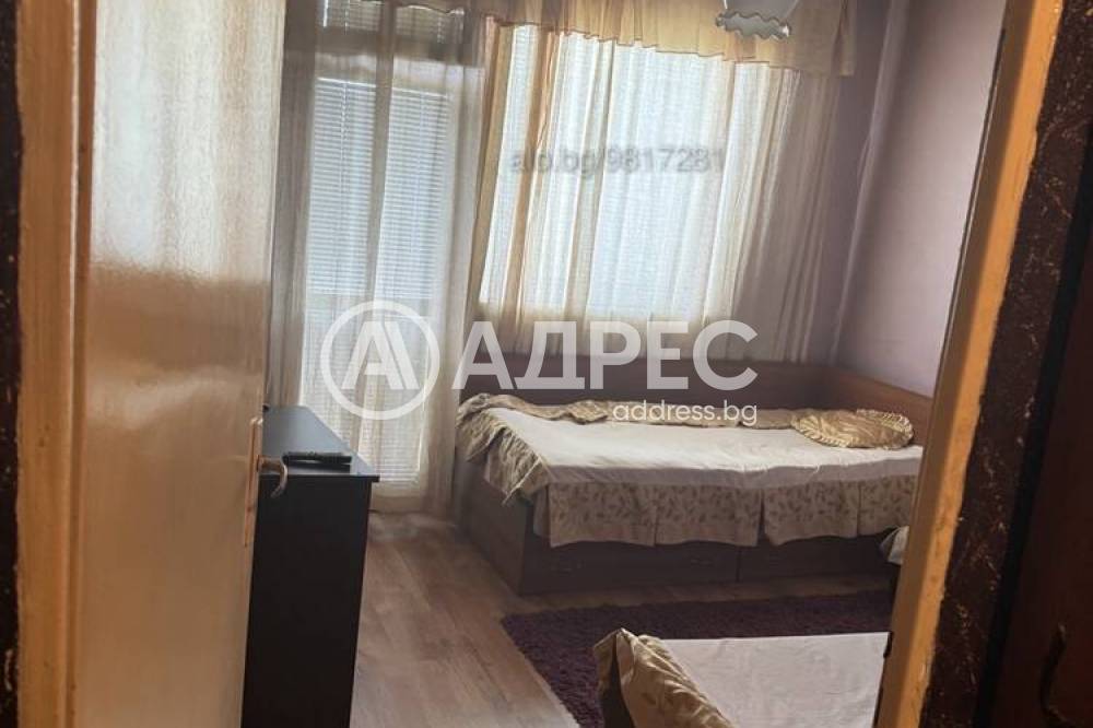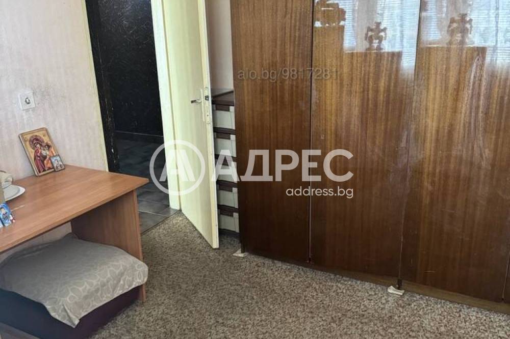 ТРИСТАЕН, панелен апартамент, с площ от 80 кв.м., на четвърти етаж. Жилището се състои от входно антре с коридор, хол, две спални, кухня, баня с отделен санитарен възел и два балкона. Подови настилки - ламиниран паркет и мокет, стени - латекс и тапети. Дървена дограма. Санитарни помещения на фаянс и теракота. Изложението е изток/запад.