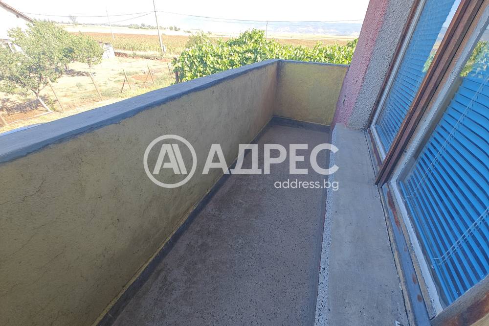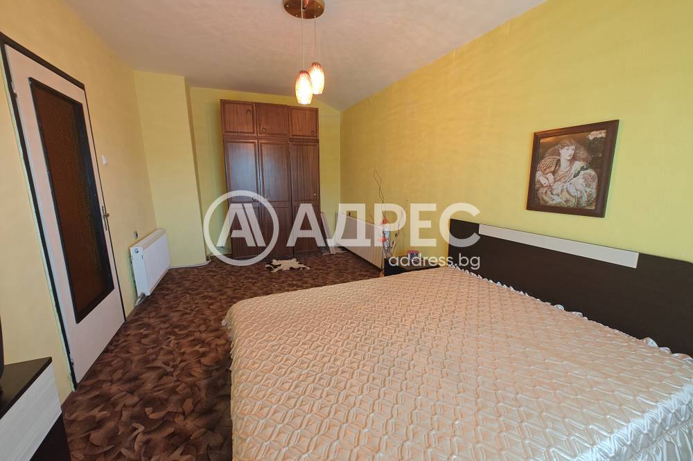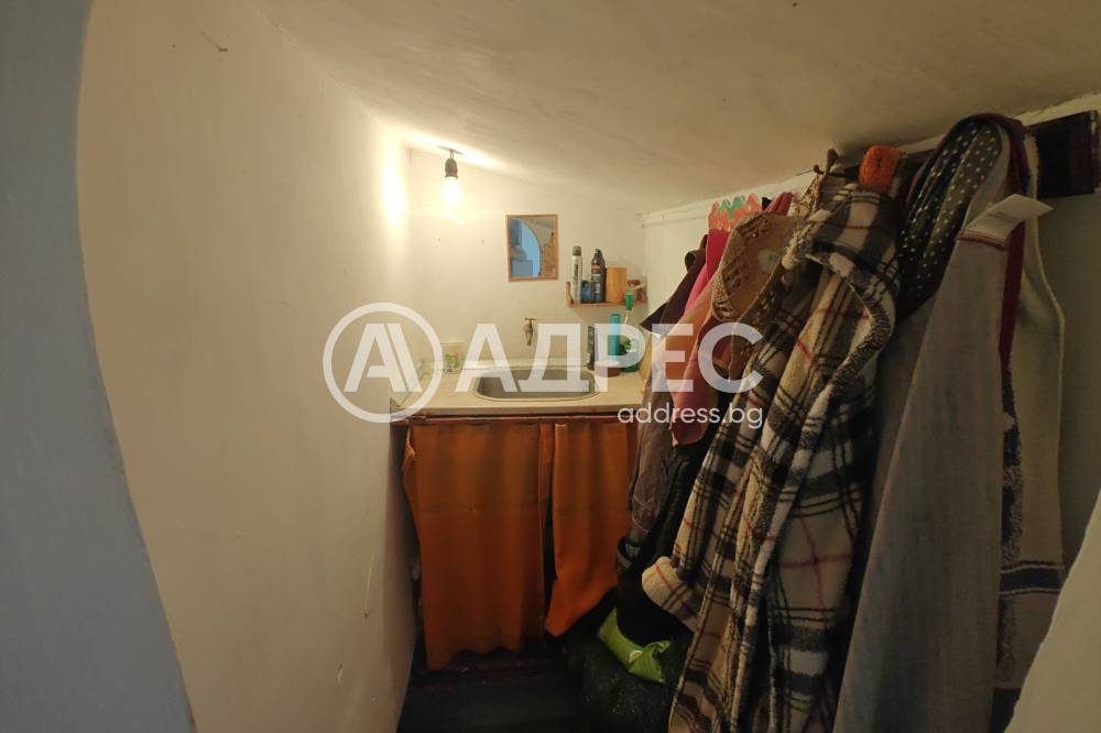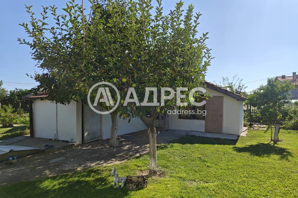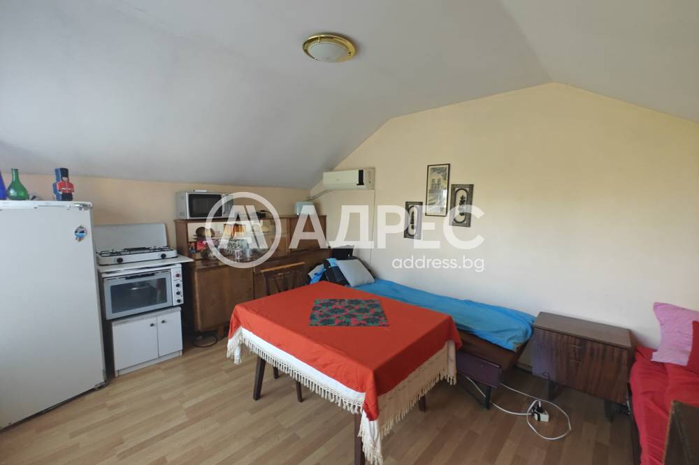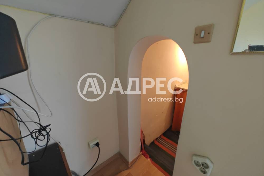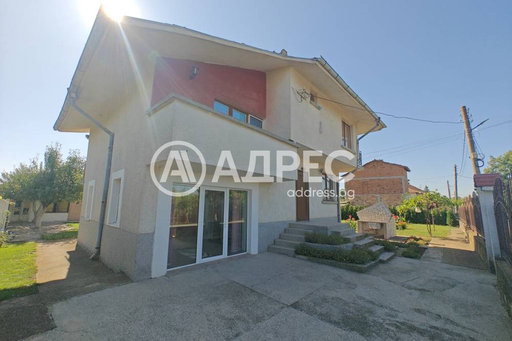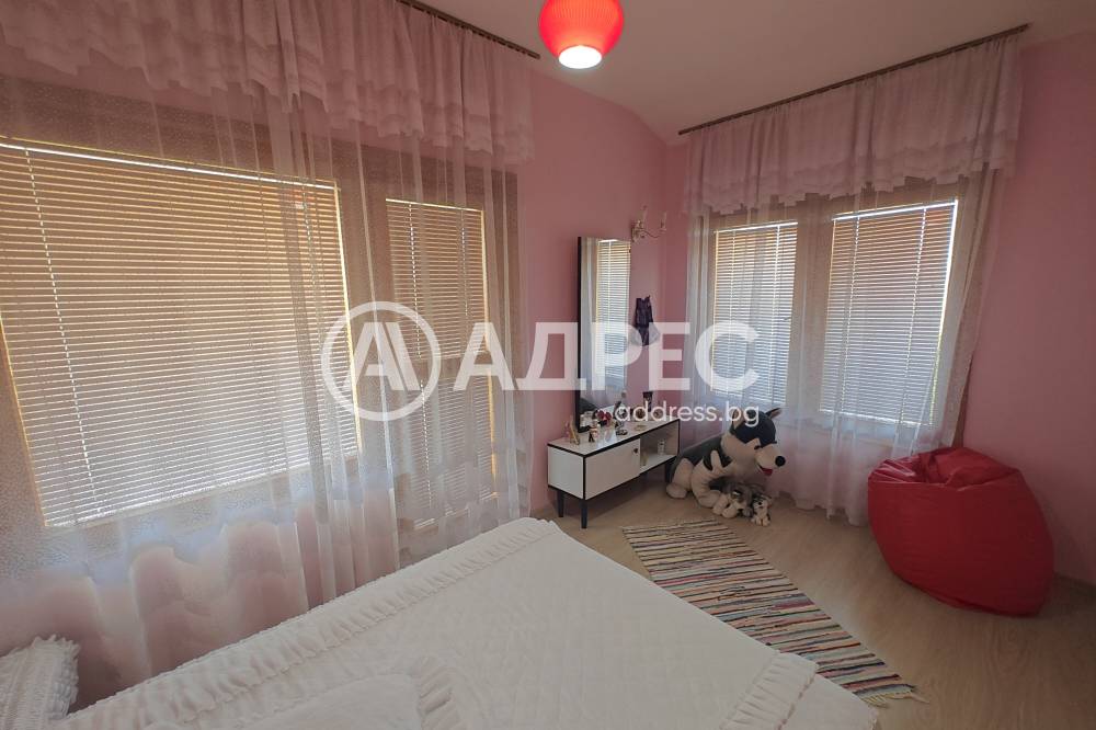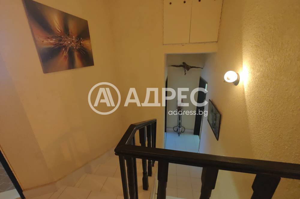 АДРЕС ПРОДАВА: Тухлена КЪЩА с разгъната застроена площ от 210 кв.м., разположена върху обширен и добре поддържан двор от 1400 кв.м. Имотът има следното разпределение: на първия етаж са ситуирани хол с кухненски бокс и санитарен възел, като към жилищната част е присъединен и гараж, преустроен във всекидневна. Чрез вътрешно стълбище се достига до втория и третия етаж, където са обособени пет самостоятелни спални, всяка с излаз на собствена тераса, както и едно общо санитарно помещение. Връзка със стълбище води и към избено помещение, което може да служи както за склад, така и да бъде пригодено за допълнителна стая.