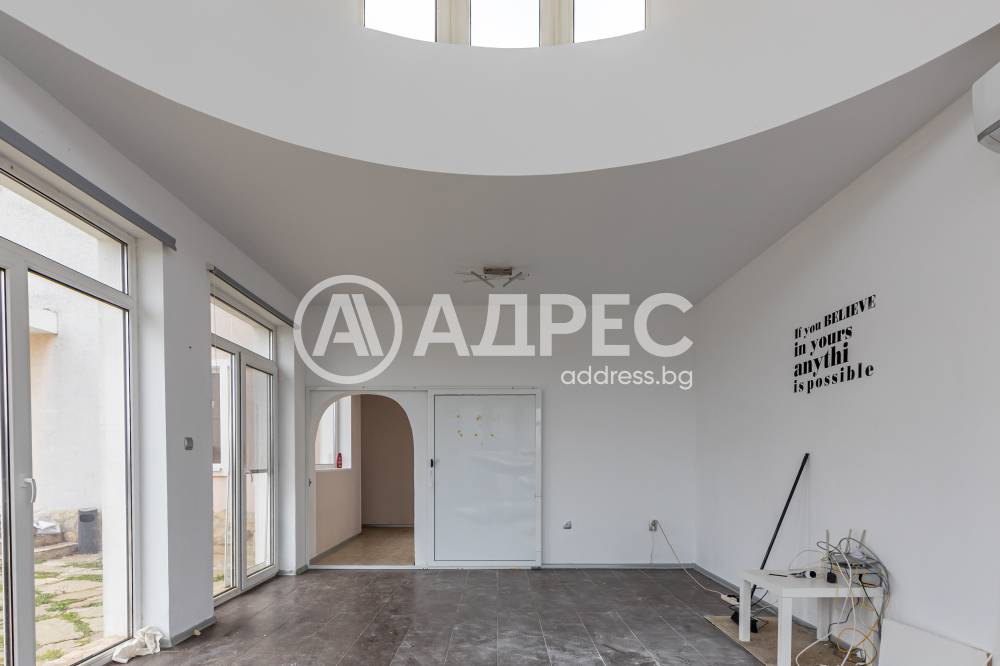 Две просторни и светли дневни с високи тавани, френски прозорци и много светлина, 4 големи спални с оборудвани бани, сервизни помещения, винарна, закрит гараж, място за паркиране още няколко автомобила, басейн.